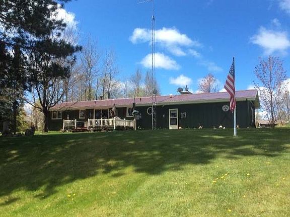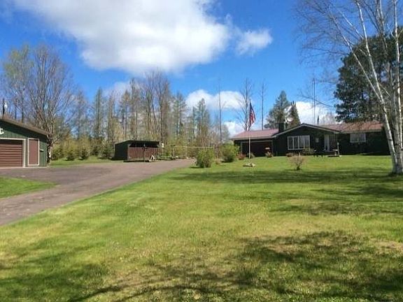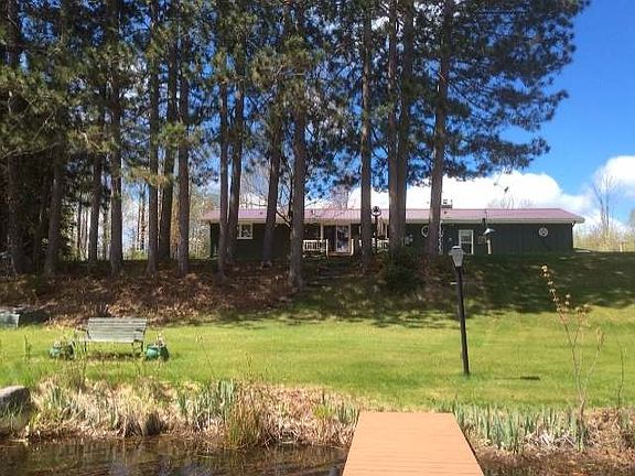 This lake home has perfect gradual slope to the lake with many mature towering red pines making a perfect up north home! There is 160 feet of shore frontage. The home itself is a well kept Dickenson home with a wood burning fire place, 3 bedrooms, 1 & 1 1/2 baths with 1,200 square feet of living space on the main floor. It has a beautiful sun deck facing the lake. And, there is plenty of space for boats, snowmobiles, etc. with having a 2 car attached garage and a 2 car detached garage and blacktop driveway. And, for those who love flowers there is many perennial flowers. The lake is also known for giant muskies!