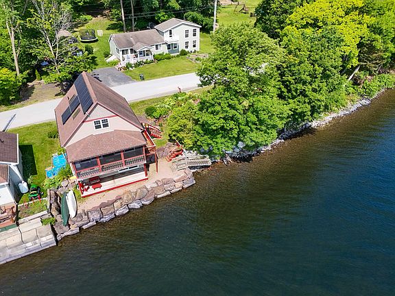 Located on quiet Abnaki Road in North Hero, this well-maintained year-round home offers 148 feet of direct lake frontage on Lake Champlain’s protected Hibbard Bay. Set on a manageable 0.18-acre lot, the property offers low-maintenance living, ideal as a primary residence or vacation getaway. Built in 2011 and equipped with leased solar panels that have zeroed the owner’s electric bill, this 1-bedroom, 2-bath home offers 1,696 square feet of flexible living space. The sunny main level features cathedral ceilings, bamboo flooring, skylights, and two sliding doors that frame panoramic, up-close views of the lake. A screened porch offers a perfect spot to enjoy morning coffee or unwind at the end of the day. The kitchen includes stainless steel appliances and crisp white cabinetry. Upstairs, a loft provides extra space for guests, work, or hobbies. The finished walkout basement functions as a lakefront primary suite with a full bath, laundry, and direct access to a lower deck, perfect for watching the sunrise over the water. With town water, a substantial stone seawall, and a peaceful setting surrounded by outdoor recreation, this is Vermont lakefront living made easy. Don’t miss the opportunity to see it and schedule a showing today.