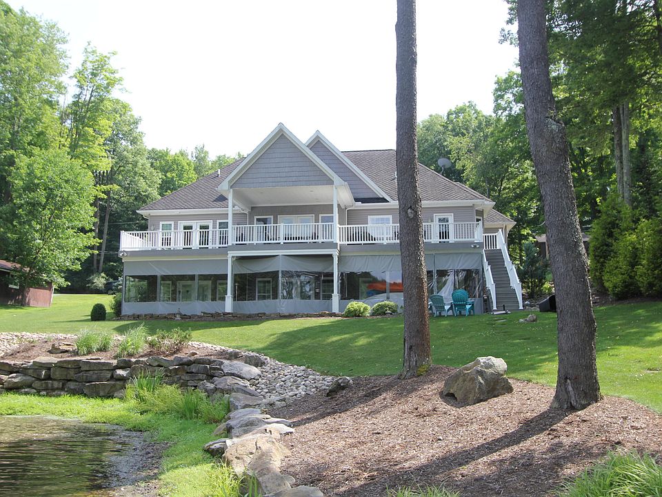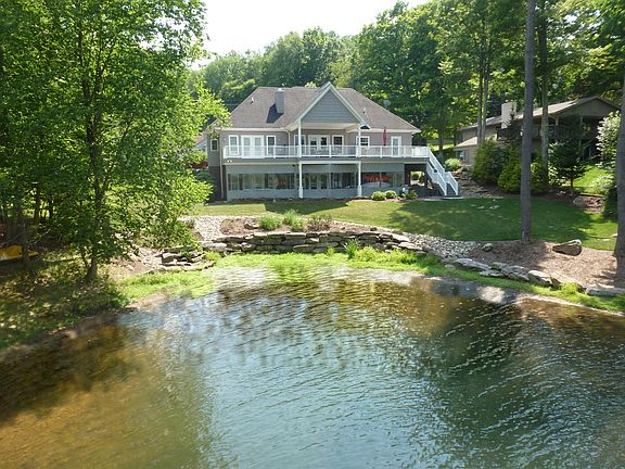 Stunning Custom Built Waterfront Ranch All four bedrooms face the Lake, all w/private bathrooms, 10' ceilings and crown molding throughout. Whole house music center controlled at each room, granite and butcher block island in the kitchen. Exquisite lighting, hardwood, tile, lower level kitchen with granite bar, 2 stacked stone natural gas fireplaces. In floor heat and epoxy garage.