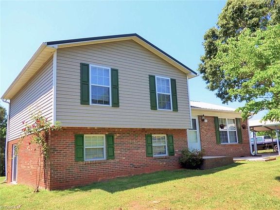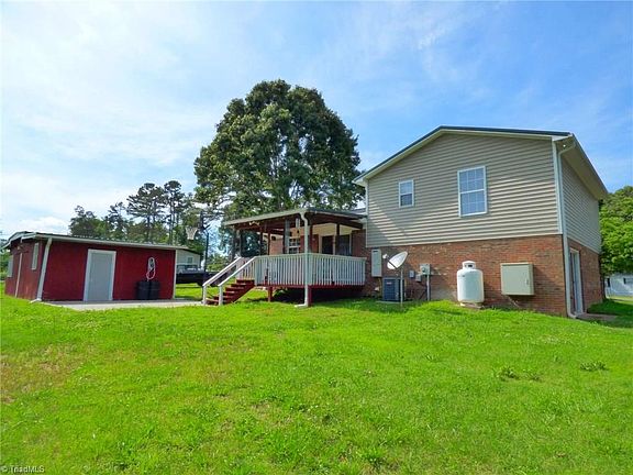 Terrific in Tyro! Fabulous 3bd 2ba Split w Easy Expansion in Heated/Cooled Lower PLUS Big Garage/Workshop! Huge family room w gas log fireplace and durable laminate floors! Efficient galley style kitchen, open dining area opens to covered deck overlooking nearly an acre! Master suite and 2 bedrooms up. Tankless Water Heater! Lower includes 2 big rooms (currently exercises & den) PLUS large laundry and workshop/storage! Double Carport! Secluded, quiet location just minutes from shopping in Tyro/Lexington.