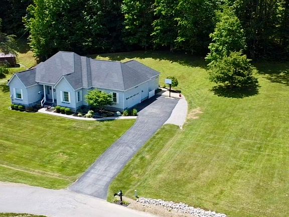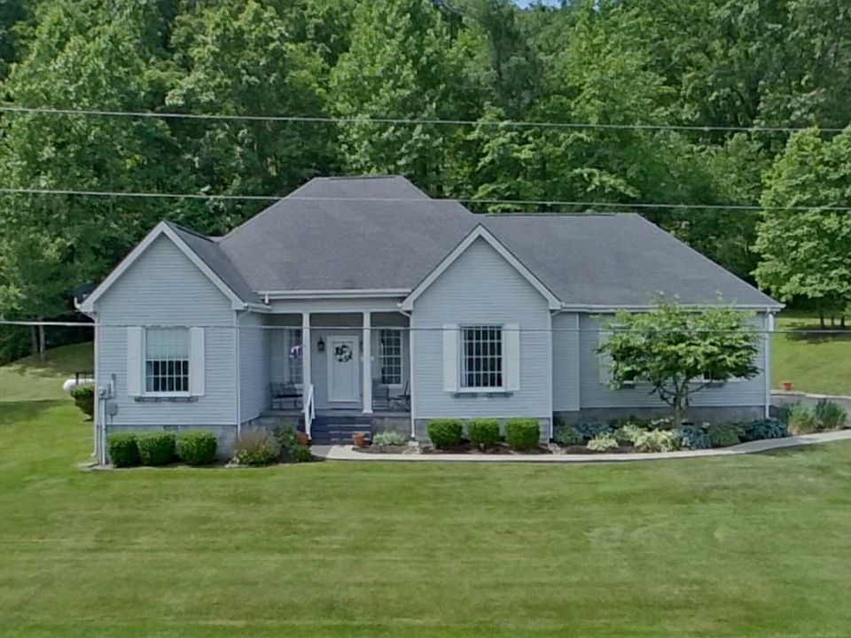This exquisite 2-story, 5-bedroom, 2 3/4-bath house boasts a country setting with unparalleled views. A golf course is conveniently located just across the street, with scenic horseback riding trails nearby, thrilling ATV trails, and Cave Run Lake all within minutes of your doorstep. The foyer greets you with 10-foot ceilings and columns leading to the vaulted living room where the focal point is the elegant gas fireplace surrounded by built-in shelves and cabinetry. French doors lead to the covered patio where a sparkling 16x32 pool beckons you on hot summer days. The kitchen and breakfast area in combination with white cabinets, solid surface countertops, sleek columns, a large island, stainless steel appliances, and tile flooring which creates a modern and sophisticated atmosphere. The oversized sink adds functionality and style while the large island serves as a versatile workspace for meal preparation and entertaining guests, offering ample storage space and seating options. Upstairs includes a bonus room equipped with a pool table and fitness/weight system, The amenities of this home are too numerous to list so call for your tour today.
