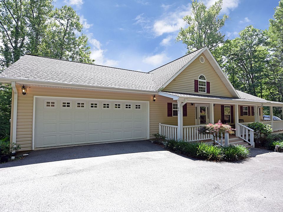 A PERFECT MOUNTAIN HOME! This one has it all... custom built, end of the road privacy, noisy creek, tons of covered deck space for relaxing & entertaining and lovely floor to ceiling stone fireplace. Open kitchen/dining/living area with plenty of room for everyone. Solid surface counters, stainless steel appliances with double ovens. Brazilian Cherry hardwood floors. Master and Laundry on the main floor. The terrace level has a fun rec room with pool table included. Additional finished space for office, media, or craft room. Two finished bedrooms with a full bath. Also 2 framed rooms for storage or future finished areas. Fabulous backyard for children, pets, outdoor recreation and games. Convenient to Hiawassee, Blairsville, Murphy with all the joys of MOUNTAIN LIFE including HIKING, TROUT FISHING, BOATING, BIKING, CASINO, VINEYARDS/WINERIES AND SO MUCH MORE!