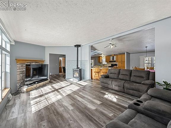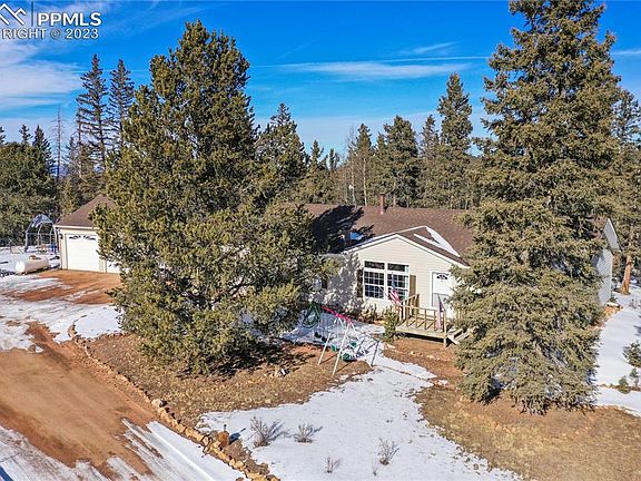 Charming ranch style home nestled on a serene 1.73 acre parcel, this delightful property offers a peaceful retreat in a convenient location. Built in 2003, this well-maintained residence boasts 3 bedrooms, 2 bathrooms, and a remarkable 3 car detached garage, providing ample space for both vehicles and storage, in addition to RV parking with 50amp service and water/sewer nearby! Situated on a tranquil dirt road, the home enjoys a sense of seclusion while maintaining easy access to Cripple Creek and highway 67, ensuring a quick and convenient commute. Meticulously cared for by its original owner, the property features numerous updates, including modern LVP flooring, fresh paint, and a new roof, embodying contemporary comfort and style. Upon entering, you are greeted by a spacious open living and dining area. The home also includes dedicated office space, catering to the needs of remote work or study. The expansive kitchen boasts an oversized pantry, providing abundant storage and organizational space for culinary enthusiasts. Equipped with a fireplace and a pellet stove for efficiency, the home offers a cozy ambiance during colder months, perfect for creating lasting memories with family and friends. Additionally, the property comes with a pre-installed radon system, ensuring a safe and healthy living environment for its occupants. Outside, the vast 1.7-acre lot offers plenty of room for outdoor activities, gardening, or simply enjoying the natural surroundings. Whether it's a peaceful evening on the patio or a gathering around a fire pit, the outdoor space provides endless possibilities for relaxation and recreation. This charming ranch style home presents a rare opportunity to enjoy the tranquility of rural living while being just a stone's throw away from the amenities of Cripple Creek and convenient access to highway 67.