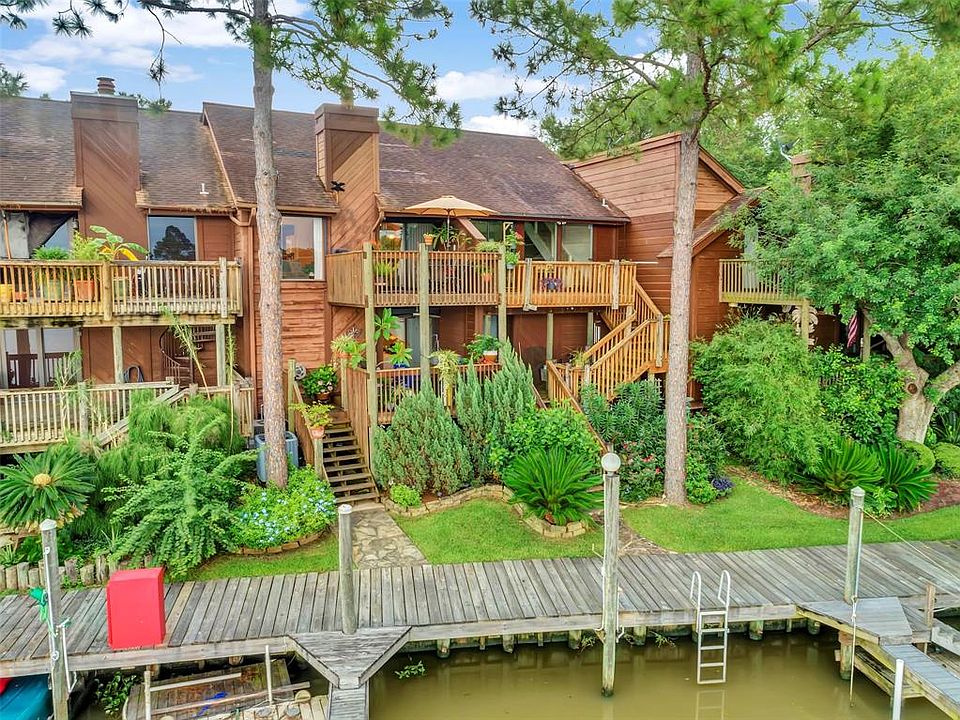 LOCATION-LOCATION! YOU WON'T WANT TO MISS THIS BEAUTIFUL & METICULOUSLY MAINTAINED WATERFRONT TOWN HOME WITH BEAUTIFUL VIEWS OF CLEAR LAKE IN THE HEART OF LEAGUE CITY. THIS LOCATION IS ONE OF A KIND & COMES WITH A VACATION FEEL ALL YEAR LONG! THE HOME HIGHLIGHTS ARE-TILE FLOORS, SOLID MAPLE CABINETS, GRANITE C-TOPS, SIDE BY SIDE FRIDGE STAYING, BUILT IN WINE RACK, UNDER MOUNT LIGHTING, DOWNSTAIRS BATH W/ HAMMERED COPPER BOWL SINK, RUBBED BRONZE FIXTURES, GRANITE, NEW CAST IRON TUB, LARGE SHOWER IN MASTER BATH, EXTRA SHELVING FOR STORAGE, CUSTOM FRENCH DOORS OFF MASTER B/R, HURRICANE SHUTTERS, SOLAR SCREENS, 2014 HEAT PUMP W/ HEPA HALO FILTER, EXTENDED UPPER AND LOWER PATIO DECKS! BEAUTIFUL TILED FIREPLACE WITH MATCHING PILAR. THIS LIFESTYLE OFFERS FISHING, BOATING AND KAYAKING RIGHT OUTSIDE YOUR BACK DOOR. THIS COMPLEX FEATURES 2 POOLS, CLUB HOUSE, TENNIS CTS IN CCISD SCHOOLS. WATER, TRASH, GROUNDS INCLUDED IN MONTHLY DUES. BOAT SLIP AVAILABLE BEHIND HOME SOLD SEPARATELY.
