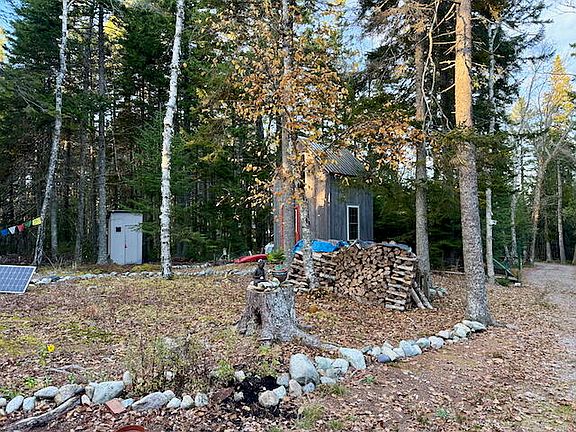 With access to the waterfront, this is a private cottage off-grid on 4.59 acres in Duck Cove Subdivision with a two-story bunkhouse and an outhouse. Ground level solar panels and generators supply energy to the home and drilled well; inside the wood stove keeps the home toasty. At times the cottage has been lived in year round, and has been comfortable independent living. Will convey turn-key with everything one needs to enjoy your spot near the coast of Maine. There is cable, high speed internet and electric on the Duck Cove Road which is maintained year round.