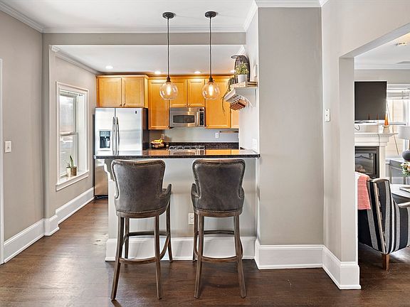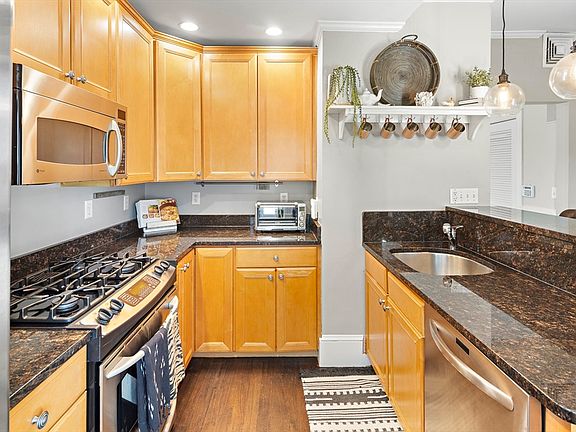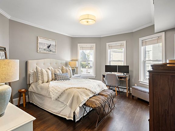 Discover this beautifully updated floor-through 2 bedroom, 2 bathroom unit that is ideally situated on the East Side. In addition to garage parking and private outdoor space, this home features a spacious kitchen with stainless steel appliances, complemented by a breakfast bar and an additional dining area. The generous, light-filled living room has a built in media console and a cozy gas fireplace. The king-size primary suite offers tons of natural light, a substantial walk-in closet and an en-suite bathroom. Down the hall, the queen-size bedroom has dual closets and utilizes the oversized hall bath featuring a Jacuzzi tub. With a large private deck, in-unit laundry, central air, dedicated storage, and hardwood floors, this unit really does have it all! This 3 unit pet-friendly association provides extra off-street guest parking and ~1,500 square feet of additional common storage space.Perfectly positioned moments from the beach, shops, dining, and convenient bus lines.