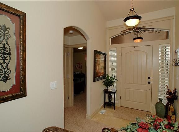 PC6541 You will fall in love w/this one! Perfect balance of elegance & warmth. Energy efficient upgrades includes: 90% furnace, fully insulated floors, vinyl windows & cozy gas fireplace. Grand, open ceilings, with lots of light. Kitchen features, custom cabinets, granite counters w/full tile backsplash & raised breakfast bar, composite sink, stainless appliances & bayed dining area. Large covered patio. Master suite has private patio & bath w/large corner soaker tub, separate tiled shower & double vanity.