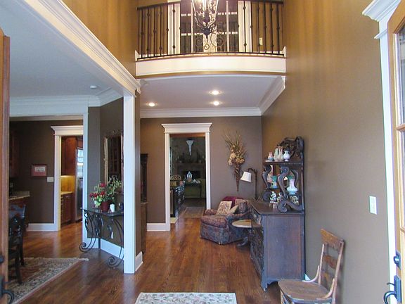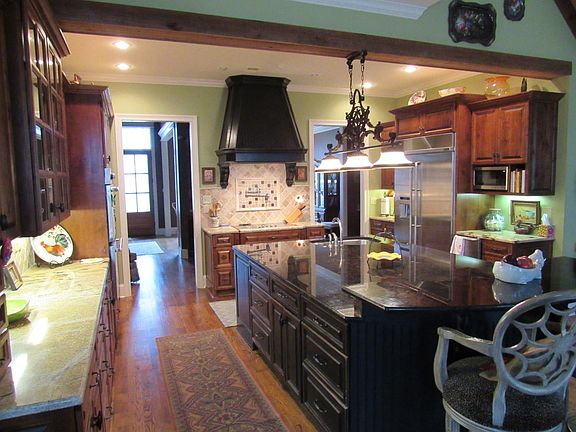 This beautiful home has 4219 sq. ft. with 10ft. ceilings down and 9ft up, there are 4 bedrooms 3 ½ baths. You enter into the 2 story foyer with the Formal Dining room on your left, walk through a cased opening into the large Kitchen with tons of cabinet space, a large island 5’8” x 8’9” with a breakfast bar at one end. The Kitchen has all stainless appliances; Jenn-Air cooktop, Jenn-Air Double ovens, 48” Jenn-Air built in Refrigerator, and a Kitchen-Aid Dishwasher. The Kitchen has a large walk-in pantry. (It’s Hidden) The Kitchen overlooks the Den/Great Room with a floor to the ceiling stone fireplace. On first floor as you head to the Master Suite you may exit through the door to the left on to the 24 x 22 wood deck. The Master Suite is to die for; double vanities, jetted whirlpool tub, separate shower, dressing area, and a double walk-in closet. There is a large second bedroom down with a full bath. Also on the first floor is the laundry room, a half bath and the office. The second floor has a “Christmas Closet”, a Bonus room, 2 bedrooms, with a shared bath and a very large double entry walk-in closet.