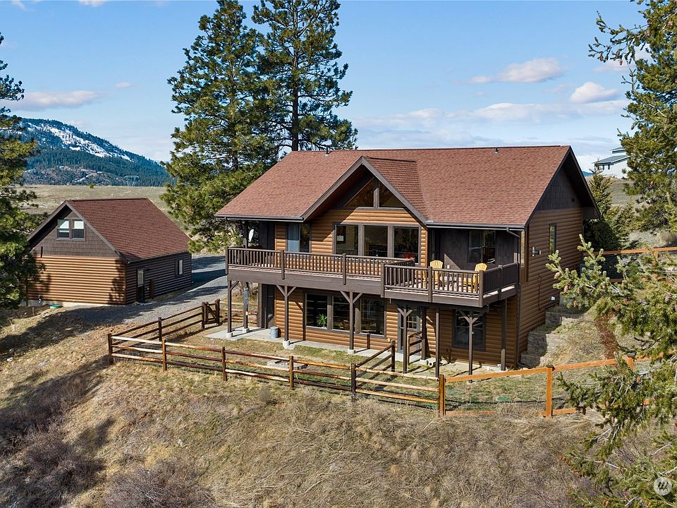 Watch the sun rise over the foothills & set over the prairie. Stargaze from the deck of this extraordinary, versatile & spacious home on a tree-lined ridge. Year-round activities abound with outdoor adventures, indoor serenity, or entertaining guests. This spectacular setting restores & replenishes. Big windows, toasty fireplace, & wood floors grace the main floor as well as an expansive primary suite with deck access. Daylight lower level has 2 large bedrooms, flex space for stretching out & media room. Detached garage for cars or all your PNW toys with guest quarters above. Your pup will love the large, fenced yard. With its blend of wilderness, privacy, community, & central location between Cle Elum & Ellensburg, you won’t want to leave.