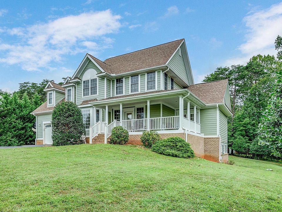 Contemporary lake access home w/seasonal lake & MTN views w/5 BR & 5.5 BA. .62 ac in the private Waterfront Sub. E/L features Single Level Living, an open floor plan, walls of windows, kitchen w/granite C/Tops ample cabinets, eat-in kitchen, breakfast area, living w/FP, dining area, lovely foyer, master suite w/a huge walk-in closet, fabulous upgraded BA w/a gorgeous bear claw tub, powder room, laundry & utility room, central vac, heated 2 car garage, spacious deck w/propane hook-up, & wrap around covered front porch. U/L features a sitting area, 2 master suites, & bonus room. L/L In-Law suite, full kitchen, family room w/FP, entertainment room, master suite, guest BR & BA, laundry room, storage room, & patio for entertaining. Approx. 5,322 sq. ft., designed for entertaining. 12X12 Shed.