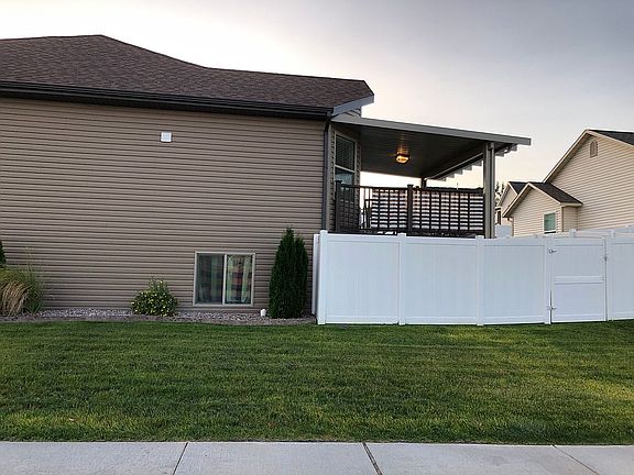 Beautiful 2997 sq ft home built in 2016 and located in a new subdivision in east Pocatello, landscaped lot with sprinkler system, three car garage (3rd bay is extra deep) that is fully sheet rocked, gas furnace & water heater with top of the line Culligan water softener and reverse osmosis water purification system, air conditioning, deck with Shade Works aluminum roof, very large RV pad which extends into backyard and is large enough for fifth wheels, toys and the trailers to carry them (25 ft. wide by 50 ft. long). There is also a fully enclosed 9 ft. x 16 ft. storage area with concrete floor under the deck. Main floor has large master suite with walk in shower and walk in closet, two additional bedrooms, an additional full bath, combination laundry room/mud room, large open front room, dining area and kitchen with vaulted ceiling. There is a thermostat controlled gas fireplace in the living room. Wood grain look tile floors in the living room and kitchen. Appliances included are dishwasher, microwave, and electric range (with optional gas hookup). Laundry room has optional gas or electrical hookup. Newly finished basement has family room, 1 full bath with two additional bedrooms and a large room used as a craft/sewing room or can be used as a sixth bedroom.