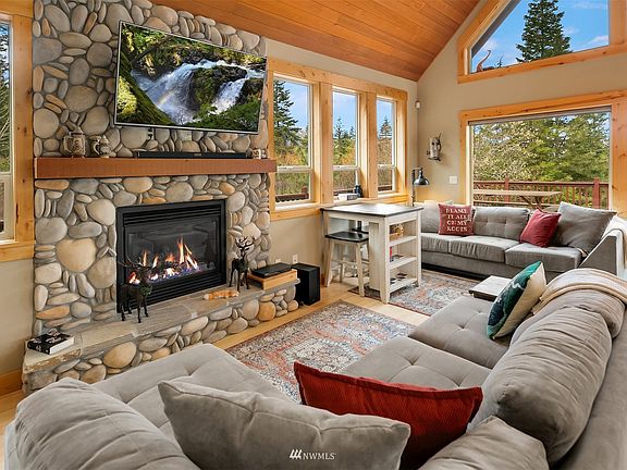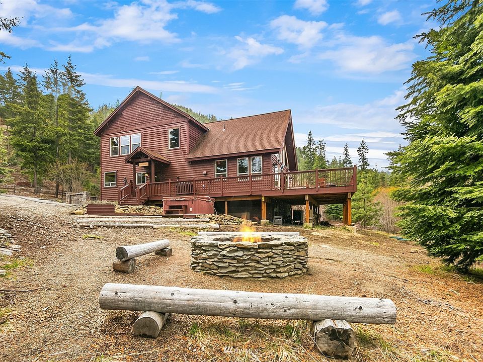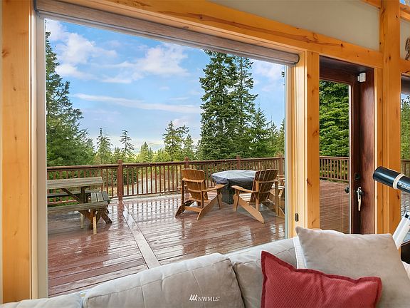 Enjoy sweeping views of Peoh Point from this contemporary Northwest chalet on 3 acres in the gated Tillman Creek community. The sun-drenched great room features a soaring vaulted ceiling & stone fireplace. Wood-wrapped windows frame gorgeous mountain views. Ample room for entertaining in the kitchen & dining room w/access to the wrap around deck. Primary bedroom on the main level,w/slate tiled shower, soaking tub & double sinks. Main level bedroom opens onto a private courtyard near the hot tub. 2 bdrms, & loft above. Secluded setting offers an ideal retreat with fire-pit & pond. Fire-wise 3 acres w/seasonal stream, split rail fences, paved drive, RV parking, & 2 outbuildings. Neighboring 3 ac parcel, ready to build, also avail.-MLS#1910064
