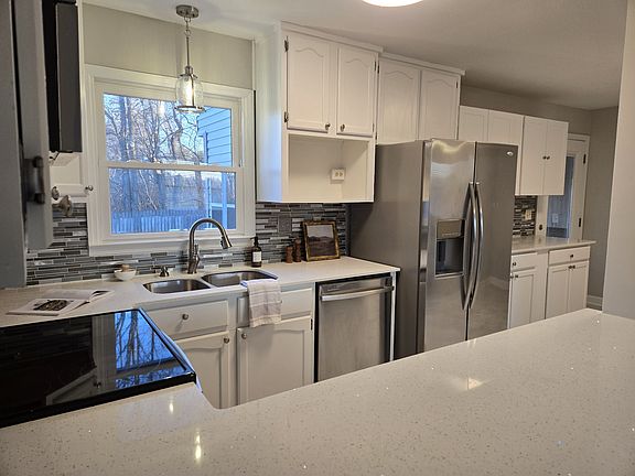 Beautifully remodeled home featuring a spacious open floor plan. The main level boasts a large great room with fireplace perfect for gatherings, a bright & white Kitchen with loads of counter space and stainless appliances, a step-down den and a luxurious primary bedroom. Upstairs, you'll find two additional bedrooms, a versatile rec room, and a delightful three-season room that invites you to relax and enjoy the views. Outside, the fenced rear yard offers privacy and space for outdoor activities, pets and family time. The covered rear porch ideal for grilling and entertaining. A 24'x36' detached 2 Car Garage is perfect size for both vehicles and hobbies. Don't miss this one—schedule your showing today!