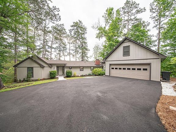 Amazing Lake Harding views from almost every room in this move-in ready home. Home features 3 bedrooms, 2 baths on main level and a perfect in-law or teenager suite upstairs. Large great room with wood burning fireplace, well equipped kitchen featuring custom cabinetry and granite countertops. Beautiful decking overlooking lake. This is a deep water lot with 431 ft water frontage! Nice boat house, floating dock and a private boat ramp! Home has a new roof 2024, new driveway, fresh paint, and public water newly run to the home. Come and enjoy Lake Life! Georgia Power leased lot.