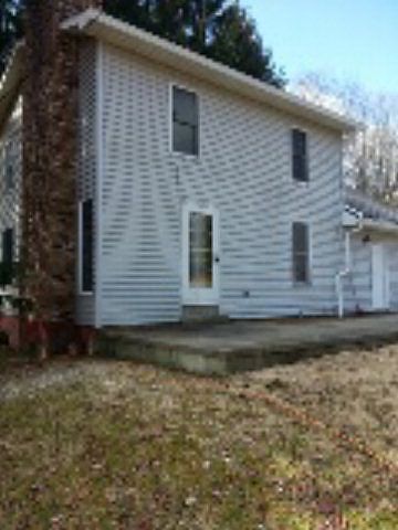 Big pond sits close to the road and house is up on the hill. Both bathrooms were totally redone this year. A large walk-in attic couldeasily be made into a 4th bedroom. Above ground pool and two large outbuildings give lots of possibilities for a family. Just minutesfrom town but all of the space and privacy of the country.