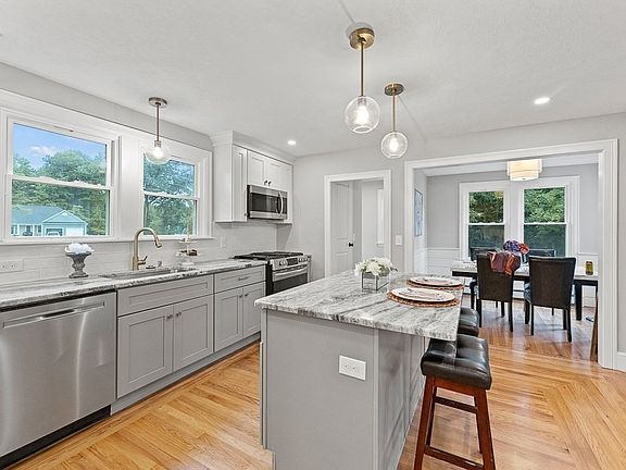 - Features: Flooring - Hardwood, Flooring - Wood, Dining Area, Countertops - Stone/Granite/Solid, Countertops - Upgraded, Kitchen Island, Cabinets - Upgraded, Open Floorplan, Recessed Lighting, Remodeled, Stainless Steel Appliances, Lighting - Pendant, Crown Molding