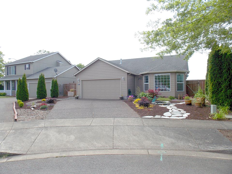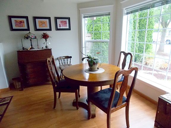 Charming home with great floor plan. Lots of storage. Vaulted ceilings in the living room and kitchen. No carpeting, there is laminate flooring throughout. Large bay window in living room. There is a pond in the front yard. Garage has new cabinets. Low maintenance backyard with covered patio and raised garden beds. Quiet location in a culdesac. Near shopping and the Amazon Bike Path.
