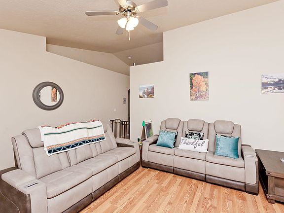 - Ceiling Fan(s), Main Level Primary, Pantry, Vaulted Ceiling(s), Window Treatments