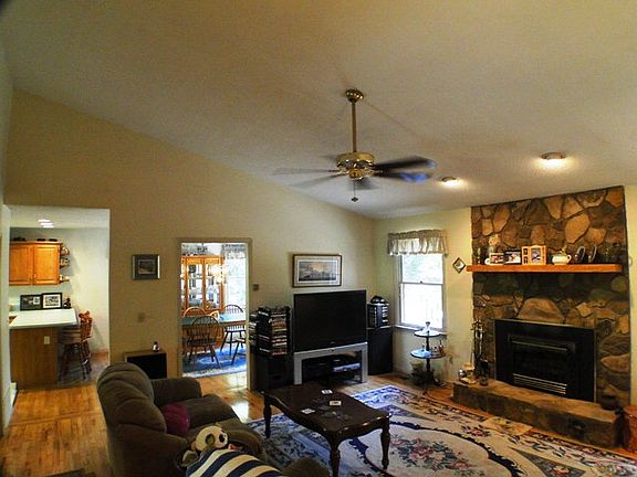 Spacious 5 bedroom 3 bath cedar sided and brick home. This is a lovely residence with total privacy yet not remote... tremendous and great view. The home has awesome hardwood floors, large kitchen, brick fireplace, full length deck, and a large family room downstairs with a good sized bedroom..Plenty of parking and an attached two car garage with inside and outside access! Lots of parking and PAVED DRIVE! There are two active springs on this property too. Each bedroom closet is extra spacious, so have extra room. Half of the downstairs is a finished basement/room with multiple use.