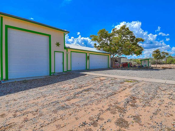 Welcome home to a BEAUTIFUL setting where you can have a comfortable lifestyle and bring all of your TOYS! This original owner has made this homestead a great place to call HOME with two courtyard patios under mature shade trees or enjoy the magnificent VIEW of the Sandias on the front deck. This 3 bedroom, 2 bath home offers a cooks kitchen with an island for prepping or enjoying a meal with friends and family. Step out to the 4 CAR/RV GARAGE for all of your CARS, TOYS, RV and WORKSHOP. Great space and hard to find. Whether you travel or just want a convenient lifestyle, this a FANTASTIC opportunity! This property is fully fenced and ready for your dogs, horses and/or chickens. Updated with a Metal ROOF, WINDOWS, and REFRIGERATED AIR!Schedule your tour TODAY!