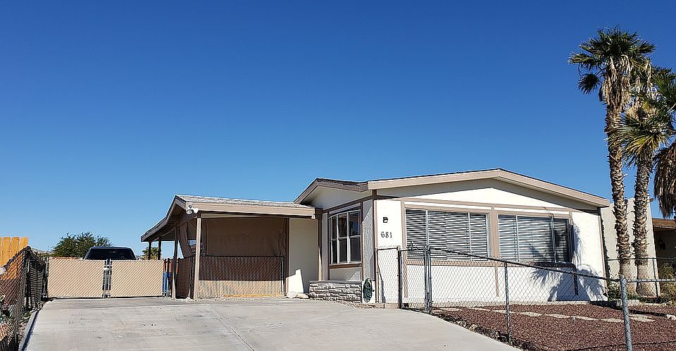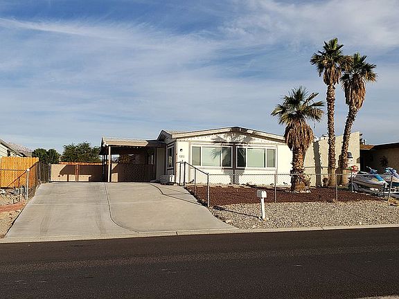 Recently remodeled home with new wood plank laminate floors in kitchen and laundry area, new carpet throughout & tile flooring in bathrooms. Large open living area with casual dining and a built in glass hutch. New windows in master bedroom, guest bedroom and dining area, as well as new drapes. Open cozy kitchen area with a new gas cook top stove & 2 built in wall ovens. Additional living or family area just off the kitchen with a newly installed sliding glass door. Guest bedroom has mirrored closet doors and a Jack & Jill bathroom that leads into the laundry room. New showers in both bathrooms, new bedroom doors & a new front door. Master bedroom has mirrored closets & built in drawers for additional space. Master bathroom has a new granite counter vanity with dual sinks, garden tub & a walk in shower. New interior and exterior paint. Plenty of space to park or store your RV, Boat or Jet skis! Additional large carport for added storage. Just blocks from the Colorado River and minutes to Laughlin, NV & Lake Mohave. Buyer to verify sq.ft., floodplain & utilities. This home is a must see to appreciate!