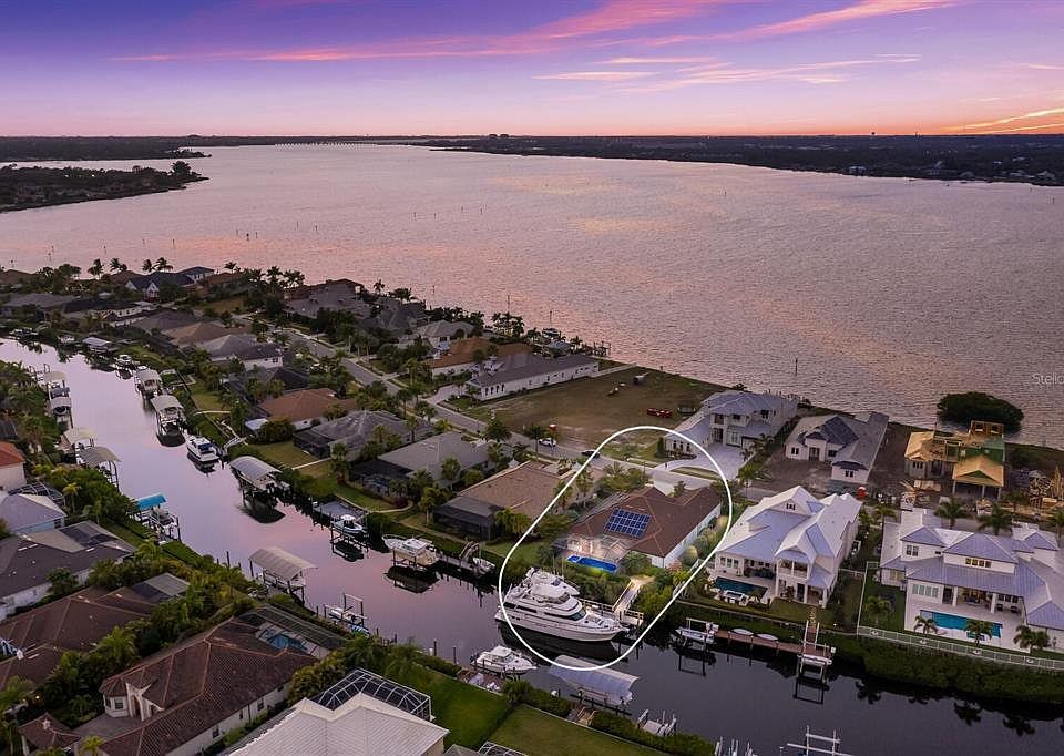 A boater's paradise, this fabulous 3055sf 3bed 3 bath PLUS office PLUS bonus room and a 3 car garage home on a deep saltwater canal in the gated community of Harbour Walk and the additional gates of The Reserve At Harbour Walk - this home offers direct access to the Manatee River and is just minutes from the Gulf of Mexico. A sprawling canal-front lanai is perfect for dining and sophisticated entertaining, with an outdoor kitchen, pool and spa overlooking the water. The private dock includes a 20,000-pound boat lift and a separate berth that can accommodate up to a 70-foot vessel. Inside the residence, you'll find open living spaces with high ceilings, including a spacious chef's kitchen and great room with an array of dazzling features. Overlooking the great room, the kitchen offers stylish cabinetry, quartz countertops, an oversized island and a casual dining area with large windows facing the lanai. The great room makes a statement with a striking coffered ceiling, huge wall of built-in shelving, a cozy fireplace, and large sliders boasting beautiful outdoor views. Inside the sumptuous owner's suite, you'll find a spacious bedroom, dual vanities, soaking tub and large walk-in shower. The home also includes an office/den with built-ins, large bonus room, hurricane-impact windows and doors, and solar panels on the roof. Don't miss an amazing opportunity to call this waterfront home your own and enjoy all the advantages of its prime location near I-75, UTC mall, restaurants, golf courses, beaches, St. Pete and Tampa.