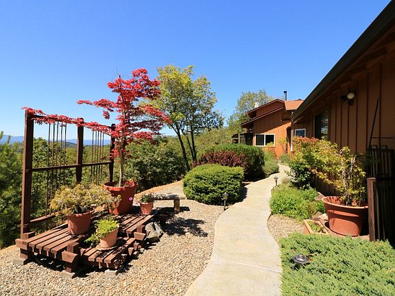 Spectacular views of multiple mountain top ridgelines, sunsets & rainbows from this home with $200,000 in new additions, renovations & upgrades! Less than 6 miles to town this gated paved driveway winds up to a quiet & private 5+acre forested setting surrounded by BLM on two sides. Light & bright great room floor plan w/vaulted, exposed beam ceilings, Vermont Castings stove & double door to 200+sf year round sunroom included in living area square footage. Spacious granite counter kitchen w/huge walk-in pantry. 11ft ceiling height home theater room w/surround sound. Oversized, vaulted master bedroom w/priceless, unobstructed bay window views & arched entry to bathroom suite with 2-person, cornered bubble tub, king size tumbled marble shower w/3 shower heads & walk-in closet fit for a queen! No vinyl in this home with more granite & tile in spacious laundry & baths. 2-car garage w/shop room. Stamped concrete walkways w/beautiful plants, trees & water features. RV parking