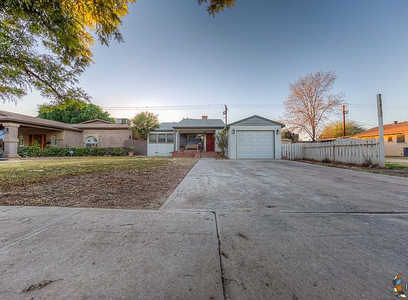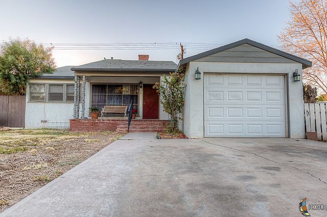 Charming home in a great little neighborhood of Brawley! Gigantic front yard with plenty of grass great for the kids to play in. The red brick front covered porch and red door gives the curb appeal of a cozy home. When you walk in, the large living room with wood burning fireplace is a great place for the family to gather. The dining area is just to the side with 3 large windows with white shutters allowing for lots of natural sunlight. The kitchen is full of natural solid wood cabinetry and has a 180 degree view of the home on all sides giving it a very open feeling. The breakfast bar is another great place to eat at or gather around the kitchen. The backyard has as a covered patio and plenty of backyard space. There is a 1 car attached garage great for storage. Come take a look at this cozy and well taken care of home today!