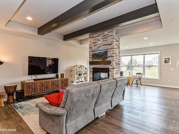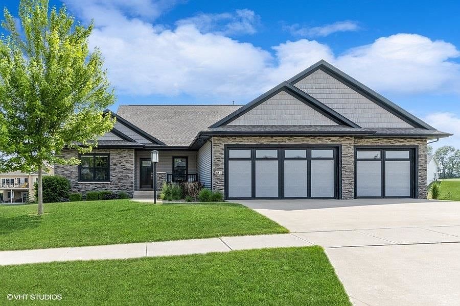 Remarkable home with excellent floor plan, situated on a beautiful lot and setting in Windsor West. Enjoy pond and walking trails throughout. This walkout ranch home features 5 bedrooms, professional kitchen with top of the line appliances, granite waterfall island, hood vent with 36" gas range, tile backsplash, wood shelving in primary closet and walk-in panty, wood beams in great room and primary bedroom, primary bath has tiled shower, two sided fireplace in great room, wood floors, and lower level has a wet bar, large family room. and two bedrooms. Extensive landscaping done by Iowa City Landscaping, oak and river birch trees and a fenced backyard. Custom window treatments throughout. Ready for you to make this stunning home your own.