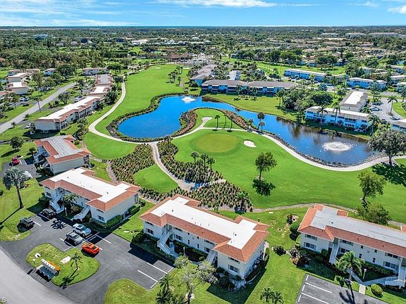 Exceptional location. Stunning views of the lake and Pines Golf Course, 17th and 18th Fairways. Enjoy dramatic sunset's from your screened lanai. This home is Immaculate and well maintained, a spacious 2nd floor with a split bedroom plan. A lush pocket park across the street from your front entrance enhances the open landscape views. Enjoy all the resort style amenities at the Glades Golf and Country Club. Walk or ride the two 18-hole Bundled Golf with courses (Par 70 or Par 55) which are gorgeous! No greens fee. Team up to play on the Pickle Ball courts, 6 Har-Tru tennis courts, Bocce, and Shuffleboard courts, or relax in any one of the 9 swimming pools. Dine at the 19th Hole Private Restaurant and Clubhouse. Only 3 miles to Iconic 5th Avenue South shopping/dining, the Pier and Gulf beaches.
