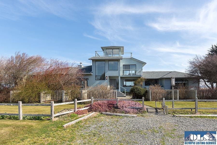 Must-See Beach Front Property with a Custom Built 3,000 sqft home and 250 ft of no bank water frontage w/access to the beach & unblockable views of the Strait, San Juan Islands, Mt. Baker, & the Olympic Mtns. The home features an open kitchen & living area w/beamed wood ceilings. Kitchen w/eating area, dining area w/slider onto the main deck. Living room w/fireplace, Family room, plus 2 br, on the main level. Upper level is the master suite w/large walk in closet, bath w/double sinks, walk in shower.