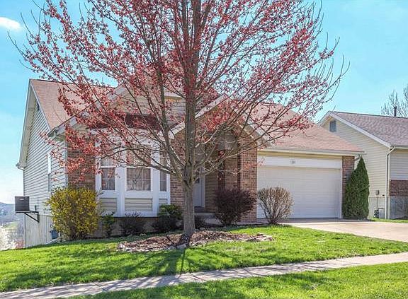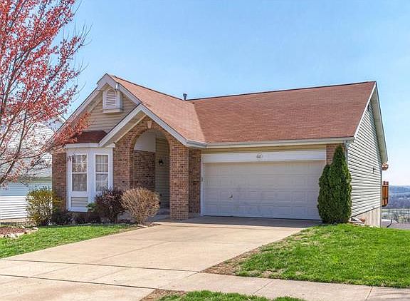 Attractive Brick Ranch, Welcomes you home to a warm Entry Foyer and Vaulted Great Room w gas fireplace, new pergo flooring and updated lighting. The Dining room combo w bay french doors lead to a pergola covered private Deck for your enjoyment of the Panoramic Views of the Eureka Valley, watch the fireworks, hot air balloon glow, sunrise & sunsets, from the comfort of your own backyard oasis. The cozy Kitchen offers stainless steel appliances, & walk in pantry. Three bedrooms & 2 full baths on main level feature Master Suite w walk in closet & master bath w double bowl vanity. Finished walk out Lower Level offers huge Recreation room w can lighting, large Laundry room, and storage w National Security Safe included. 2 car garage & new roof in 2011. Located in the Hunters Green Neighborhood w fishing lake and playground, in Eureka Mo that offers AAA Rockwood School District.