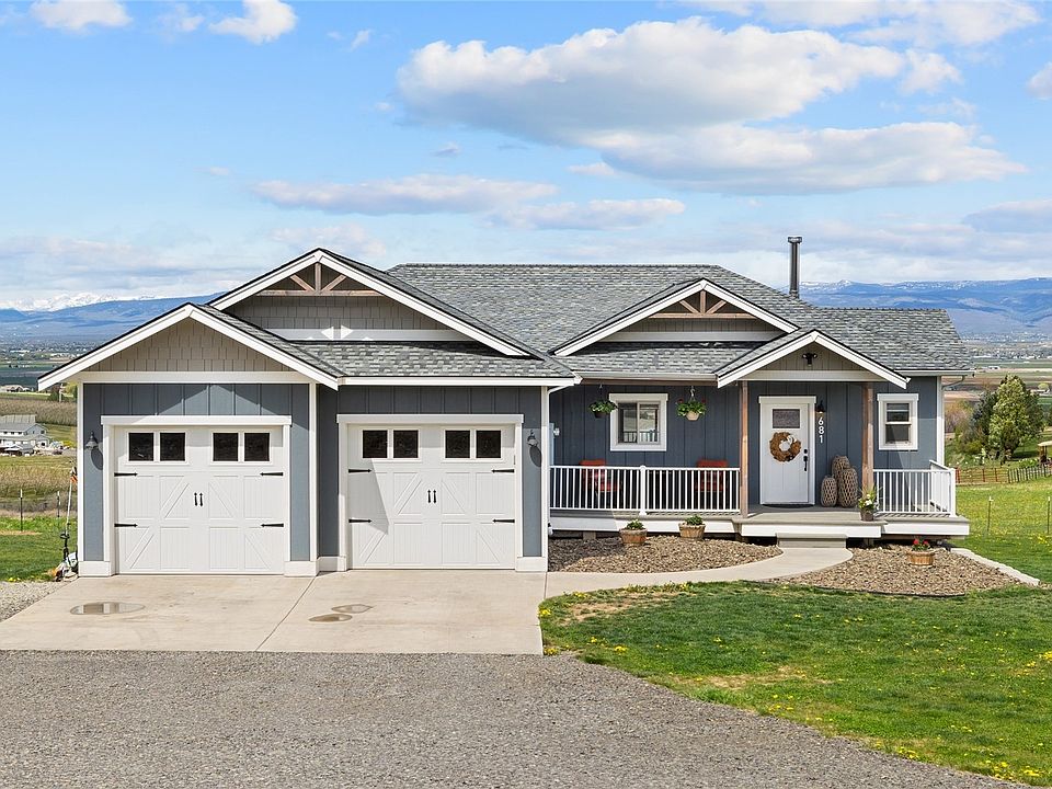 This stunning custom home, constructed in 2018, sits on 5.6 acres of pristine land, offering unparalleled views of the picturesque valley and majestic Stuart Mountain range. With 2705 square feet of thoughtfully designed living space, this home features 4 beds and 2.5 baths. The main floor is highlighted by a luxurious primary suite, providing convenience and comfort. An open layout seamlessly connects the living, dining, and kitchen areas, creating an inviting atmosphere for entertaining. Descend to the lower level to discover a spacious bonus room and three additional bedrooms, providing ample space for guests. Outside, this property utilizes irrigation water rights, ensuring lush fields and pastures for livestock if desired.