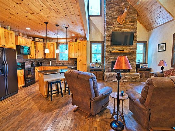 Escape!! This Gorgeous custom made home will allow you to escape the world in style This 2 bed 31/2 bath home features soring ceilings open spaces, and plenty of peace and quiet to allow you to completely forget about the outside world. The main living area boasts a combination beautiful wood of craftsmanship and rock masonry that is unsurpassed. The combination of building materials throughout the home is the perfect bled not to overwhelm. The main level master bedroom feature custom woodwork, bright windows, and a generous private bath with whirlpool tub, double sinks, tile shower. The upper level bedroom is very roomy and shares a bath with the loft area that could have many uses including playroom, extra sleeping space, or an office. On the very lowest level there is a giant family room with a full bath. The possibilities for this room are endless including another master bedroom. Also, on the lower level is a two-car garage with plenty of additional space or a workshop. The best part of this home is on the exterior and they are the 2 huge decks one on each level to sit and listen to the silence. A must see for the person with a decerning taste for solitude.
