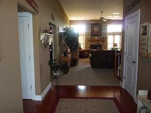 Better than new Open Concept Ranch seeking new owners. Very lightly used by non smoking, non pet owning sellers. Master suite includes 10' ceilings, sitting area, walk-in closet, whirlpool bath & separate shower stall. Convenient first floor laundry. Gorgeous Gas Stone Fireplace floor to ceiling. 90+ high efficiency furnace, 75 gallon water heater. 8' Basement with brick form walls stubbed for bath waiting your finishing touches. All stainless kitchen appliances, custom blinds and ADT system included.