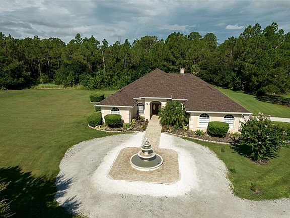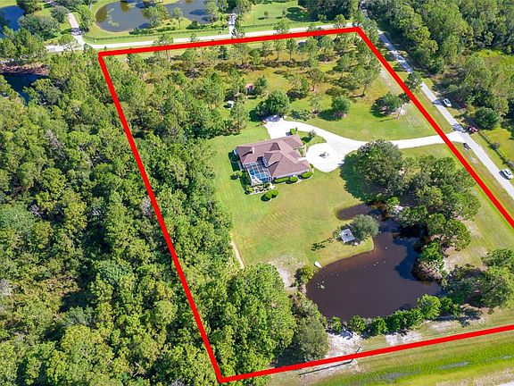 Considering moving to the country? This 3637 sq ft executive home sits on 7.5 acres in the Deed Restricted Community of The Forest, Panther Ridge. Its so close to Lakewood Ranch that it shares the zip code! The home has a two story, split floor plan, with many beautiful updates including: new roof, resurfaced pool/spa, pavered lanai front, carpet, hardwood, plantation shutters, remote control blinds and new hardware throughout, just to mention a few. Most all of the upgrades were done this year. The master bedroom has two walk in closets with California closet features. Sliders to the pool area, a garden tub, large walk in shower, and two separate vanities complete the master wing. The front office has a open view of a picturesque water fountain outside the front entry. Living room and dining room are perfect for entertaining, and are close to the kitchen. The kitchen has new stainless appliances, two pantries, granite, wood cabinets, and breakfast bar and dinette area with view of the pool. The Gathering Room has wood burning fireplace and sliders that lead to lanai. Three private bedrooms at back of home share two full bathrooms. The upstairs large fifth bedroom has its own full bathroom. If not needed as a bedroom it could easily be home theater or bonus room. Back downstairs, you find the laundry with cabinets, wash tub, and storage. The back door leads to a 3 car garage with added ceiling storage. Groomed landscaping, wildflowers, circular driveway, fountain, fire pit, stocked pond, wooded area make this an ideal outdoor property to compliment the home. Panther Ridge is three mies from a new Publix, Premiere Sports Park, Hospital, schools, and world class golf courses: Concession, Ritz and Lakewood National all will serve the golfer enthusiasts passion. Retail center UTC and Benderson Rowing facility just minutes away. Miles of private groomed trails, bridges, tree hammocks delight the equestrian, biker and hiker. The serenity of nature and the convenience of amenities make this lifestyle so desirable. Call us for your private showing.