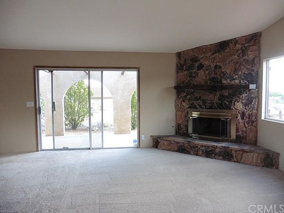 Joshua Tree Village - home with 2 bedrooms, 2 bathrooms and a den. New paint and carpet! Great location! Living room has a lovely fireplace and sliders to a nice covered patio.The kitchen is open to living room and there is a dining area too. The den is just off the living room and has a 3/4 bathroom. Two spacious bedrooms, one with full bath and sliders to a small covered patio and woodfenced courtyard. The backyard is chainlink fenced and has great westerly views. Two car garage as well. Natural gas. Convenient for village shopping.