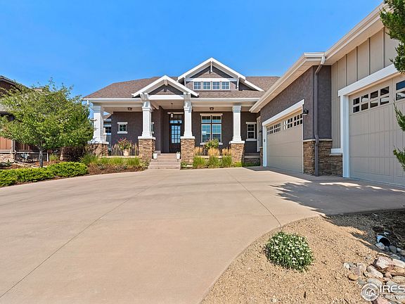 Enjoy Harmony Club living at its finest with this 5 bedroom, 5 bathroom, impressive ranch home. Take in the front range views from the inviting front porch. Once inside, you'll love the charming dining room along with the bright and spacious living room with cozy gas fireplace, attractive wood flooring and detailed woodwork. The gourmet kitchen is well appointed with a large granite island, abundant storage and high end stainless appliances. The master retreat boasts high ceilings, updated carpet and an en-suite, five piece master bath. Two large bedrooms, each with their own attached bathroom, round out the main level. The basement is perfect for entertaining or relaxing with a generous family room. Set up guests or an office in the two basement bedrooms. Unwind on the covered back patio that opens to the greenbelt. Store your vehicles, toys or golf cart in the oversized, 3 car garage with fresh epoxy flooring. Don't forget the pool, clubhouse, incredible golf, dining and events!