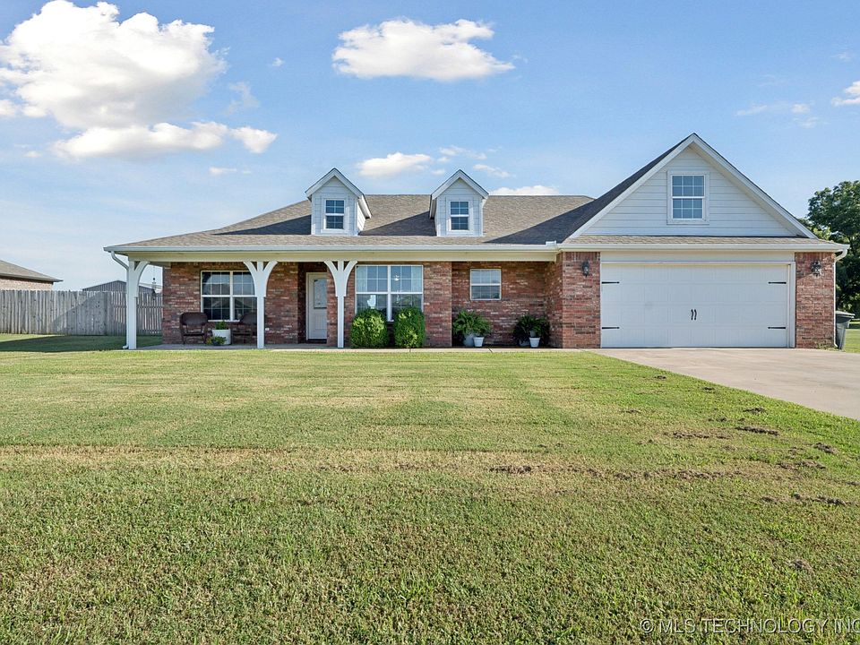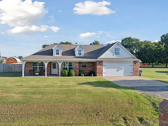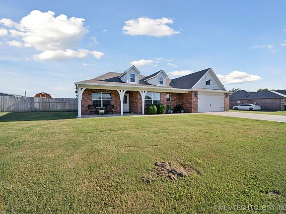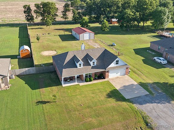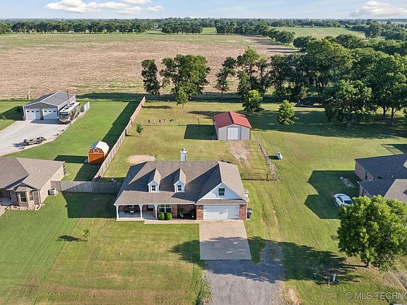 Beautiful split-floor plan home featuring 3 bedrooms, 2 bathrooms, and a 2-car garage with a spacious upstairs game room/flex space! This serene .69-acre property backs up to a field where cows occasionally graze, offering peaceful views and privacy. The property is fully fenced and cross-fenced ready for anything you envision! There is an above-ground pool pad already in place for your own above-ground pool. Need a shop? You'll love the incredible 20x40 shop with electricity, a steel I-beam for projects, and ample storage. Inside, the home features granite countertops throughout and a wood-burning fireplace in the open, airy living room. Enjoy relaxing mornings or evenings on either of the covered front or back porch. The home faces north, giving you soft morning light and sparing you from the harsh west sun. Tucked toward the back of a quiet neighborhood of only 25 homes, this gem offers both privacy and community. Less than 20 minutes to Tulsa and eligible for USDA, FHA, VA, Conventional loan, and is currently an assumable VA Loan. This one checks all the boxes!
