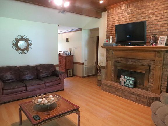 Great 3Br / 2Bth home situated on 2 acres! This house features a large kitchen with nearly new SS refrigerator and microwave;both 2 years, plenty of counter space, a floor to ceiling cabinet/shelf including a broom closet and lots of additional cabinets, A breakfast area in front of a bay window looking out to the front yard and a peninsula perfect for barstool seating. You’ll love the large living area with fireplace/brick surround and beautiful mantelpiece, a cathedral ceiling with a rich looking bead board panel and beams. The master bedroom en suite has a separate tub and shower and double separate vanities and floor to ceiling cabinet for lots of storage. Walk-through bath leads to laundry room, then walk-in closet. Attached double garage with storage cab and plenty of room for extra fridge, deep freeze and access to full size attic. There's a 2-section covered back porch with two new ceiling fan lights, space for a grill, table and chairs and additional outdoor furniture. There are two additional bedrooms with double door closets/top shelves, ceiling fans and a shared bathroom. Fenced in back yard with 16 x 16 workshop , 10 x 16 storage shed with pull down access door, and another open air storage shed. There are new light fixtures and ceiling fans throughout the house. This home has a hook up transfer switch so that all you need is the generator for emergencies! Somewhat new flooring in living areas and bedrooms; laminate wood flooring in the living, dining and master bedroom and carpet in the two extra bedrooms. Other features: Split plan, coat closet, back yard structures/buildings all have electricity, full attic, built-in security system, 2 yr old water treatment system, beautiful dentil wood moulding in living spaces. A must see! For inquiries, fill in box below "Get more info" or check the circle beside "property owner" only.