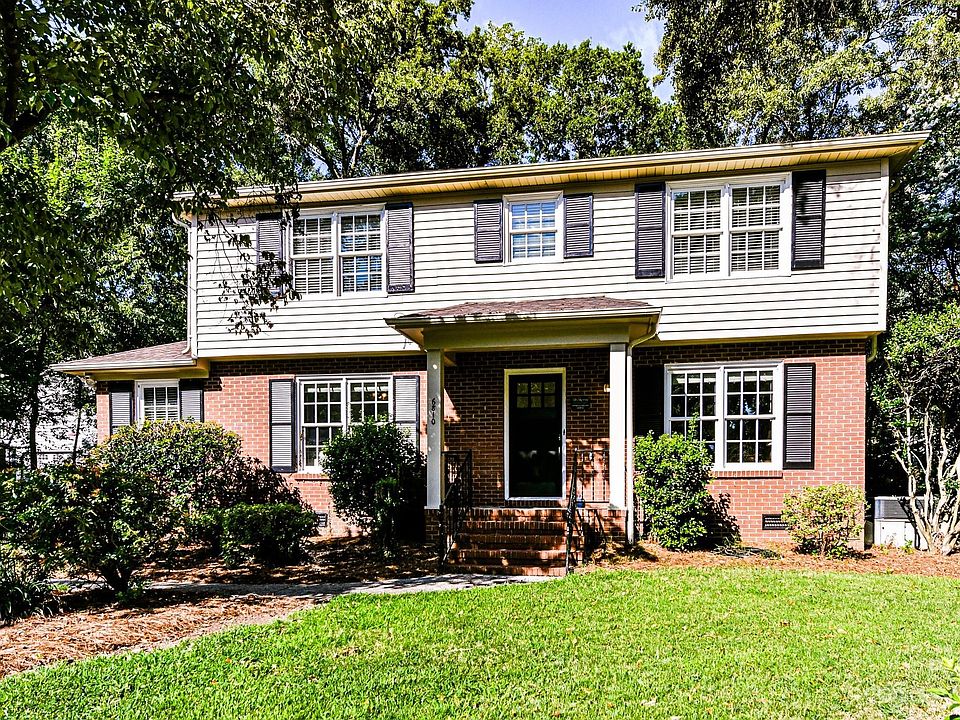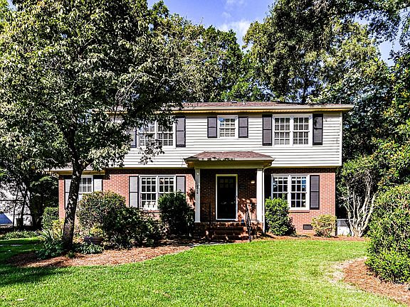 Beautiful two story in popular Olde Providence backing up to Olde Providence Park. You will be immediately charmed by the gracious covered front porch welcoming you inside. Step into the foyer to find fresh neutral paint and hardwood flooring throughout most of the home. Flexible floor plan with two large living areas downstairs, a dining area as well as an eat in kitchen. FOUR bedrooms upstairs including nice sized primary bedroom with spacious closet and remodeled bath. Hall bath with modern vanity and tub/shower combo. You will love the large fully fenced backyard - so private and so many possibilities! Adorable treehouse, planting beds, nature abounds. Large storage closet/workshop. Roof 2018. Walk through the back gate to lovely greenspace and walking trails. Walkable to shopping at Colony Place (HT, Walgreens, many restaurants), and minutes to SouthPark, the Arboretum, Stonecrest & top-rated schools. Easy access to Uptown Charlotte and interstates. Don't miss this one!