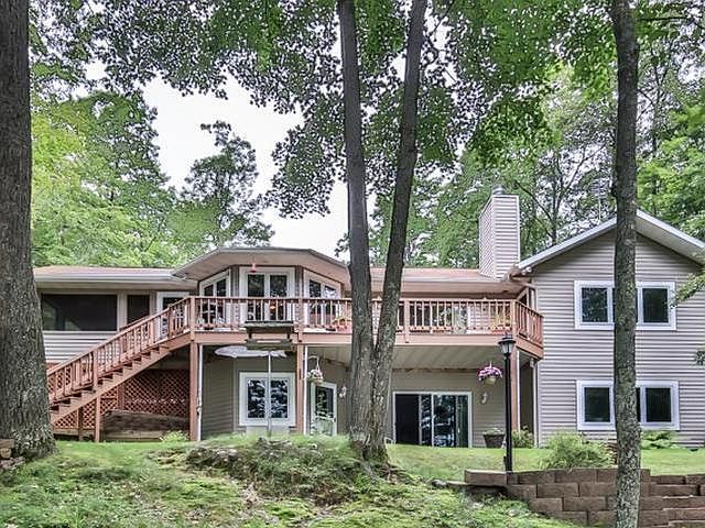 A covered porch welcomes you to this well maintained 3BR, 3BA home featuring open concept living, dining, kitchen for family gatherings & easy entertaining. All living areas including 2 bedrooms, Cherrywood screen porch & deck are lakeside. Highlights include vaulted ceilings, wood-burning FP, maple cabinets and extensive use of granite. Main flr includes laundry, beautiful master suite w/walk-in closet and exquisite bath with shower, large corner jetted tub, double vanity. 2nd BR and bath complete the main level. Lower level features a large family room w/knotty pine T & G accents, wet bar, family guest suite with large bath, tiled shower. A 2nd kitchen & private entry make this ideal for in-law suite. 2 car gar, paved drive & significant boulder retaining walls. Gradual approach to sand frtg. The crystal waters of this full rec. lake, undeveloped shores, State Land, Loon calls and soaring Eagles await you. Great location just a few mins. So.of Minocqua.
