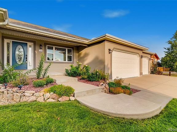 Expansive Indianhead ranch home on over an acre! One level living at its best, this gorgeous home offers an open, light-filled floor plan appointed with hardwood flooring, fresh neutral paint, recessed LED lighting and vaulted ceilings. The tile foyer flows into an elegant formal dining room and spacious family room with a two-sided fireplace. Everyday luxury awaits in the eat-in kitchen equipped with granite countertops, stainless steel appliances and a center island with counter seating. The private owner's suite delights with a large walk-in closet and 5-piece en suite bathroom. Continue down the hallway to find two generously-sized bedrooms and a polished full bathroom. Downstairs, an unfinished basement provides ample storage space or room to grow! With an attached 3-car garage and detached RV garage, you'll have plenty of space for all your vehicles. Updates completed in 2019 include fresh carpet, new switch plates & outlet covers, plus a new backyard fence with three gates. Explore the trails and recreation opportunities that await you at nearby Boyd Lake State Park.