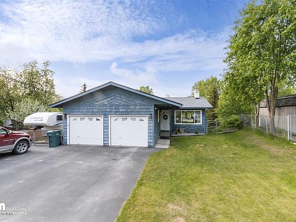 Welcome home! This hillside ranch has been beautifully updated & is within minutes of JBER. On the main floor you'll find 2 bedrooms, a remodeled bathroom, a big walk-around kitchen, dining area, & living room. The walk-out basement has 2 more bedrooms, 3/4 bathroom, large utility room & family room w/ access to the MASSIVE back yard. Don't forget the XL 2 car garage w/ epoxy floor & RV parking!