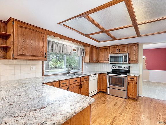 Unwind in comfort in this sprawling 4-bedroom, 2.5-bath haven (2,613 sq ft). Imagine: a dedicated office for conquering your workday, a well-designed floorplan that fosters togetherness, and a gourmet kitchen with granite countertops that beckons culinary creations. Unwind in your oversized primary suite, then entertain effortlessly in the separate dining area. The finished basement offers endless possibilities, while the expansive private backyard, backing to open space, is your own slice of tranquility. Great storage shed as well! Each spacious bedroom provides a peaceful retreat, perfect for unwinding after a long day. This home offers a great foundation with its solid construction, efficient solar features, and functional layout. A little TLC will allow you to personalize the finishes and create your dream space. New carpet pampers your feet underfoot, while an included washer and dryer, and a two-car garage with storage add effortless ease. Top it all off with easy access to C-470, nearby walking/biking paths, and the beauty of Chatfield Reservoir. This isn't just a house, it's your launching pad for a life well-lived.