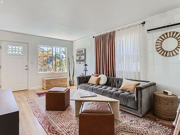 Welcome to this charming 2-bedroom, 1-bath cottage nestled in the middle of a quiet street yet close to vibrant Woodstock and Foster-Powell's dining and shopping. Just a few blocks from Mt. Scott Park and Community Center, too! This delightful single-level home features expansive south-facing windows that bathe the living and dining rooms in natural light. The interior boasts hardwood floors and a ductless mini-split for year-round comfort, while the exterior stuns visitors with a fresh coat of paint. The large backyard offers endless possibilities - an expansive garden, lawn games or an ADU. Store your belongings easily in an on-site shed, and your car under the shade of the carport - or use the carport to shade guests gathered at a picnic table in the summer! This cottage is the ideal blend of comfort, style and convenience with an unbeatable location. Recent updates include new water main, water heater and pex plumbing in 2022 and a new crawlspace vapor barrier in 2024. Don't miss out on this charming gem! [Home Energy Score = 10. HES Report at https://rpt.greenbuildingregistry.com/hes/OR10198687]