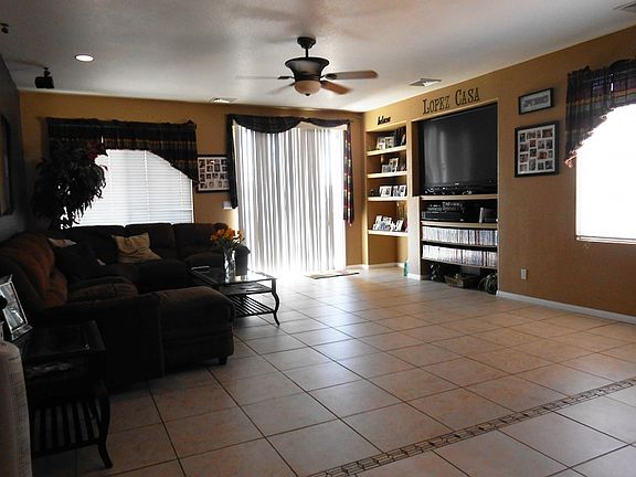 REDUCED! Front courtyard & fountain, backyard grass, double gate yard access, dog run, built in bbq, & block wall. This luxurious home features custom paint throughout, built in shelving in the living room and a large master bedroom. Keep away the dust bunnies with tile & laminate wood floors throughout. Granite counter tops, eat in dining, and peek through breakfast bar finish the kitchen. Call 4 Your Tour Now!