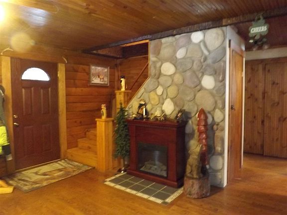 Wonderful log home on 1.76 acres offers 3 bedrooms, library or den area, separate dining, main floor laundry, metal roof, basement, large living area, wood floors, enclosed front porch and covered porch, 30 X 40 pole building garage, upstairs plumed for bath, generator, and access/driveway is by deeded easement. This is a must see home priced to sell!