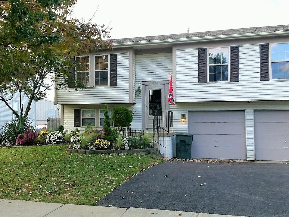 Welcome Home- Nothing to do but move in! Immaculate four level split, full of natural light with 9 ft glass doors off living room. Updated bathrooms, owner's bedroom has walk-in closet. Perfect for entertaining with a two tiered deck on a landscaped fenced yard. (Trampoline, play-set and the 24x54 pool may convey if desired). Oversized 2 car garage and two storage sheds 8x16 and 8x10. New driveway and disposal, furnace 2014, roof and hot water tank less than 10 years old. No neighbors behind home.