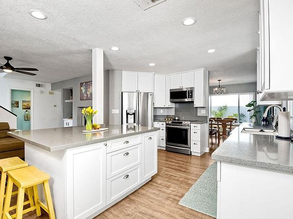 Welcome home to this gorgeous fully remodeled home in the coveted Brookfield neighborhood of La Costa. Situated on a cul de sac street, this home features 4 bedrooms and 3 bathrooms. All the hard work has been done for you! As you walk in you'll notice the new Luxury vinyl plank flooring and the bright light that comes through the new windows and sliders. Well laid out floor plan that flows seamlessly from the dining room into the fully renovated kitchen. In the kitchen you'll find ample storage, Quartzite countertops, stainless steel appliances and a custom wine rack! The warm flooring continues into the living room with tasteful custom paint colors and a dual sided fireplace to enjoy in both the living and family room. Head through either slider to your own private oasis with new concrete and turf and a lovely Pergola that's perfect to enjoy all seasons in sunny Carlsbad! Once you head upstairs, you'll find all the bedrooms. The master is it's own private retreat with high ceilings, tons of natural light flooding in and a brand new gorgeous bathroom! No need to fight over the space when you have dual sinks and a giant shower with 2 custom shower heads! 3 more spacious bedrooms are also upstairs with a remodeled bathroom to share. With the roof, windows, flooring, kitchen and bathrooms all being new, you just need to pack a bag and move in! You get all of this all while being close to some of the best beaches, shopping, restaurants and schools. Socal living at it's finest!